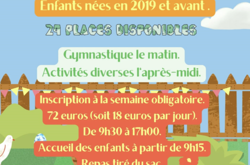 Le stage aura lieu du 07 au 10 Avril. Il est accessible à tous les enfants nées en 2019 et avant. Au programme : gymnastique, jeux, activités manuelles… Les horaires du stage sont de 9h30 à 17h (accueil à partir de 9h15). Les inscriptions ont débuté le 2 mars pour les adhérents. Sous réserve de places encore disponibles, les non-adhérents peuvent s’inscrire à partir du lundi 16 mars. Attention, les places sont limitées : 24 places disponibles ! Inscription à la semaine obligatoire : 72 euros. Renseignements : lagnieugym.contact@gmail.com / 07 61 42 52 33